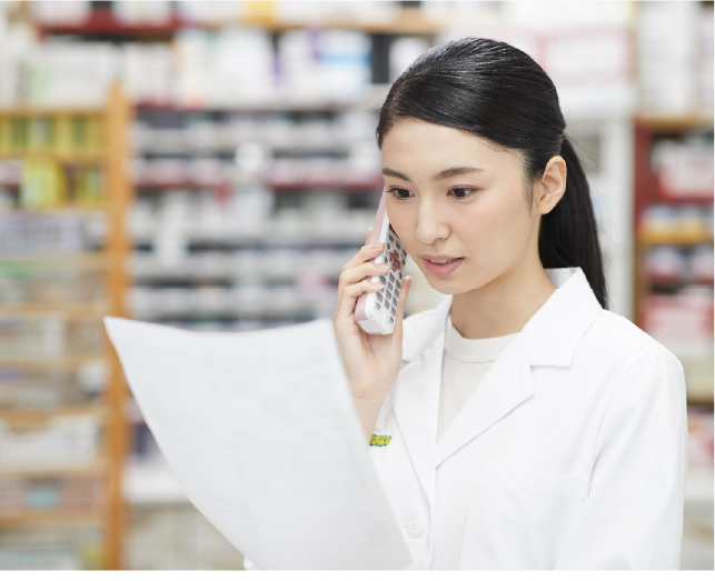「かかりつけ薬剤師」が、皆さまの服用後の体調変化についても継続してサポートいたします。必要に応じて、処方医に報告し、処方されたお薬の変更などの提案も行います。